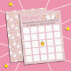あなたのハロウィーンの赤ちゃんシャワーのための完璧なベビービンゴカード。ピンクの背景に2つの可愛い小さな幽霊を特集。ダークブルーのバージョンや他のゲームのコレクションを見る。© ArianeCイラスト-All rights reserved