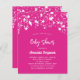 ホットピンクの背景。白飾い星を持つ。白文字。名前とパーティー・詳細のパーソナライズおよび追加1枚= 1枚の招待状を印刷したエッジからエッジ