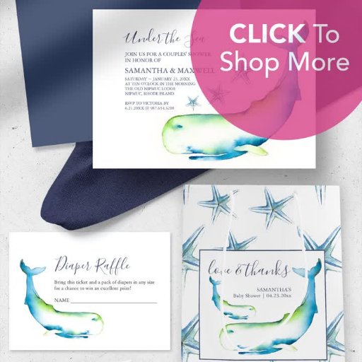 Unique Ocean Themed Baby Shower Blue Whaleデザイン: Victoria Grigaliunas