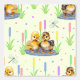 水色ペアベビーのアヒルは、子供部屋パステル色のカタイル、水玉模様、クリームの背景にトンボと一緒にパドルで。