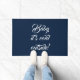 ベビーダークネイビー青と白の文字の書道の外は冷たいカスタム書道の文字エレガントかわいい歓迎ドーおもしろいマット