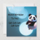 青いバブルの背景に描かれているのは、誕生日メッセージを持つベビーのパンダである