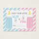 愛らしいベビーボトル投票カー素晴らしド、ベビー遊シャワーのためのゲーム。各与え客は、ベビーの性別に投票するためのカードを投げる。青とピンクの背景を持つ2セットのベビーボトル画像を備ストライプのえている。このストアでも一致するテーブル記号が利用可能。