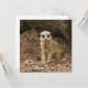 愛らしいベビーのメルカットが木の幹の上に置かれ、無垢な眼差しを放つ。明るい色合いと濃い色合いをブレンドしたファーが、可愛らしいシーンに魅力を添える。