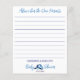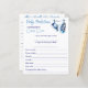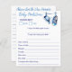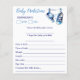 ボーイブルーのベビーシューズシンプルキャップモダンフォントのカジュアルベビー予測とアドバイスカード。男の赤ちゃんの赤ちゃんシャワーゲーム