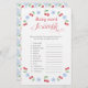 ベビー単語スクランブルさくらんぼトップ赤ちゃんシャワーゲーム答え鍵: 1.バスタイム2.車の座席3.妊娠4.ボトル5.おむつ6.ベビーカー7.毛布8.生まれたばかりの 9.ミルク10.看護11.ハイチェア12.PACIFIERマッチングゲームが利用可能。