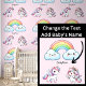 ベビー名またはその他の文字の追加 – ピンクの壁紙に可愛いユニコーン&レインボー