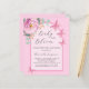 アーチ付きピンクの背景。ピンク飾のフローラ、バラの花、緑の水色のユーカリの緑と蝶。カスタマイズし、お母さんの名前を追加するbeおよびパーティー詳細。文字:ベビー開花。1枚= 1枚の招待状を印刷したエッジからエッジ