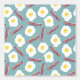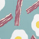 おもしろいをテーマにしたベーコンと卵のデザインをティール(緑がかった色)の緑の背景に置き、キッチン、ダイナー、カフェに最適。オリジナルアートby Nic Squirrell.