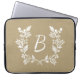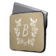 白素朴フローラリースとベージュの背景にカスタムモノグラム動揺してのラップトップスリーブ。