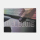 ベースギターのモダンなドアマットの玄関マット。 首から反射する暖かい着色されたライトが付いている電気ベースギター。 文字はあなたがそれとして好むか、または去る何でもに歓迎、あなたをそれを変えることができます言いますが。 音楽的な世帯またはスタジオへのすばらしい入口。 プラス、それはあなたのお気に入りのなベース奏者、ミュージシャンまたは音楽愛好者のための素晴らしい引っ越し祝いパーティーのギフトを作ります。