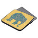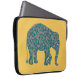 お使いのノートカッコいいPC用のネオプレン製スリーブカスタマイズ。ゾウのシルエットで、ダークブルーとブルゴーニュのペイズリーパターンが入ったゴールドイエローの背景で、好みに合わせて変更でもしきる。Posh & Painterly 'Heffalumps'コレクションの一部、このデザインは任意のラップトップスリーブに合わせて調整できる。