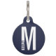 このペットタグは、モダンなボールドサンセリフフォントスタイルのイニシャル「M」と名前を前面に、飼い主の連絡先を背面に刻印し、ペットが迷子になることを防ぎます。あなたの犬、猫、その他の大切なペットに最適です。