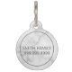 このペットタグは、モダンなサンセリフフォントスタイルで、ペットの名前とイニシャルをパーソナライズし、タグの裏側に飼い主の連絡先情報を記載することで、ペットが迷子になることを防ぎます。