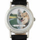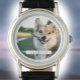 愛玩動物の写真と名前を腕時計に載せて思い出スタイリッシュしなさい。写真を変更して自分の犬や猫を表示する。あなたのペットの名前に文言を変更しなさい。