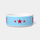 あなたの独自のカスタムを作成パーソナライズされたし、クリスマス赤の素朴なヴィンテージ西のスクリプト/前後にタイポグラフィ名前をカスタムするは、中間とライトブルーの背景に3つの星と、セラミック、ペット犬の猫の犬の子猫のフードボウル。あなたのペットの名前/あなたのテキストを入力しカスタマイズて。ペット素晴らし犬/猫の飼い主、友人、家族のための誕生日、クリスマス、休日、新年などのために。