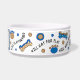 あなたのかわいいペットのために、この大きなブルーのペットドッグボウルをカスタマイズしよう。「食事と引き換えに遊ぼう」