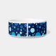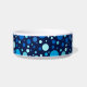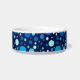白い鉢に青いドットのアクセントプリントを付けたペットボウル。中サイズまたは大サイズのボウルから選択。このカスタマイズ器を追加し、文字やデザインの仕事や買ありのまま。