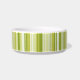 白いペットボウルに緑のプリントのデザインのアクセントストライプ付き。中サイズまたは大サイズのボウルから選択。このカスタマイズ器を追加し、文字やデザインの仕事や買ありのまま。