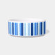 白いペットボウルに青いプリントのデザインのアクセントストライプ付き。中サイズまたは大サイズのボウルから選択。このカスタマイズ器を追加し、文字やデザインの仕事や買ありのまま。