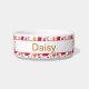 犬のために設計されました!このパターンには、ピーナッツバターを詰めた赤い犬のおもちゃ、ピーナッツバター関連のアイテム、そして白い背景に足跡が特徴です。ペットの名前を入れてこのボウルをカスタマイズしてください!