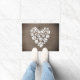 犬や猫の手がハートの形でプリント。風化木フェイクデザイン。ペット好きにはぴったりな贈り物。さらに多くの犬や猫のドアマットやオリジナル動物愛好家の家の装飾のためにジェンのドードルの世界を訪れる。