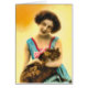 ペット猫カードを持つ女の子