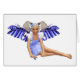 この甘い小さな妖精は可愛い青いギンガムピナフロントのドレスを着て、ブロンドの弁髪と花の花びらで作られた美しい大きな青い翼を持っている。