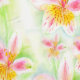 ペルーのユリの水の色Alstroemeria水の色モダンは、新鮮なパステルピン、緑、黄金の黄色とオフ白い色合いでアートの花のパターンを洗う。オリジナルパターンの設計と手の絵を描水色のサラ・トレットによるwww.mylittleeden.com