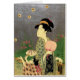 母および子供の身に着けているパターン(の模様が)あるな着物はリードおよび花と並ぶ池の側面によって、ホタルをつかまえます。 女性は子供がそれらを追跡する間、またファンを握るファンおよびホタルのおりを、握ります。 シリーズのページ、「Shiki Bijin無し」(4季節の美しい)。 元の18世紀な(1793年の)木版画から、Eishosai Choki著「Hotarugari」(ホタル)。 複製権所有©の2013年のpadreの芸術