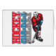 アイスホッケー用スティックおよびパックを持つ赤くおよび青のホッケー選手の隣の赤く白いおよび灰色のはっきりしたなホッケーの文字! ホッケーのためのあなたの愛を示す素晴らしい方法! カラフルで、スポーティなホッケーのギフト!
