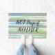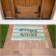 ホットサマーブルーグレーグリーンウォーター色のストライプ ドアマット
