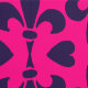 ホットピンクと深いブルーフルーアデリーズのパターン壁紙。背景の色をピンクから自分のデコに合った色に変更できる。
