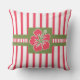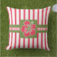 ホットピンクのハイビスカスとストライプモノグラム アウトドアクッション