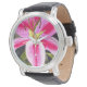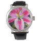 ホットピンクのユリの花の水の色ポップ・アートののアートフラワー 腕時計