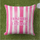 パティオ枕 – 編集可能なストライプ文字とホットピンク色の。海辺の素晴らしコテージ、コンドミニアム、ビーチ小屋、または自分の庭で。澄ん文字もしは不要