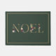 アクセント付きの伝統的スタイルの休日の形式モダンで、この森の緑の形式は、金ゴールドセリフレタリングで書かれたNOELの文字がバーガンディ、ブルーとピンクの水色の花と後ろの緑で飾られて淡い色のいる。一致する金ゴールド縁ど線が文字を構成する。