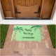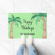明るい緑の背景に飾は、水色のヤシの木とクリスマスライトを使用したおもしろいフェスティバルドアマット。このマットを自分の名前でカスタマイズし、好きな挨拶を変もし更する。オリジナル水彩©ミケーレ・デイヴィス。