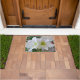 ホワイトアマリリスとクリスマスツリー ドアマット