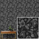 ホワイトグレーオンブラックフローラペイズリーエレガント壁紙