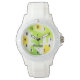 水かわいらし色の背景を持つフローラ絵画ウォッチは、草の緑の背景に白いデイジーを示している。時計は所有者パーソナライズされたの名前と共に使用できる。