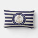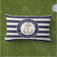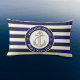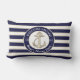 ホワイトネイビーストライプブルーのボート名金ゴールドカラーいかりようこそ腰枕。