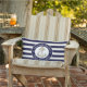 ホワイトネイビーブルーストライプボートネームいかりへようこそ アウトドアクッション