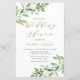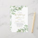 招待状のゲストは、このカスタマイズ可能な緑のウェディングシャワー文房具の招待状であなたのウェディングシャワーへ。水色の白い花と緑がマッチした緑のパターンを備えている。お客様のイベント詳細を追加して、この水彩ウェディングシャワー招待をパーソナライズする。この緑のウェディングシャワーの招待は、春と冬の結婚式のシャワーに最適である。