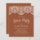 卒業生祝だ!このカスタマイズ可能な卒業案内でイベントへの招待状ゲスト。素朴な台本と白いブロケレースが特徴。詳細を追加してカスタマイズする。このエレガントテラコッタ卒業招待状は、他のカードのストックと色でも利用可能である。