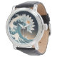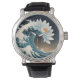 ホワイトロータス&海ウェーブ – 優雅な動き 腕時計