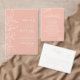 QRコーミニマルドスキャン&書道ウェディングRSVPカード付きホワイトリーフメロンピンクエレガントフォント。