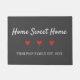 石板のグレーの背景にエレガントクラシックの白文字で設定された設定日で名を表すファミリー名doormat白いスクリプト文字で設定されたメッセージ「home sweet homeエレガント」の間に3つのキュートな赤いハートを置いたメッセージ。詳細と色カスタマイズを好みの色に合わせてパーソナライズ。