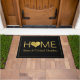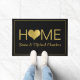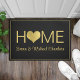 「ホーム」モダン文字の大きなフォーマットで、金ゴールドハートと姓を使用する。金ゴールドと黒。新婚のための完璧なウェルカムドアマット。