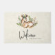 葉の多い植物に囲まれかわいらした鹿が横たわるウェルカムドormat。ボ素朴ホスタイルデザイン。